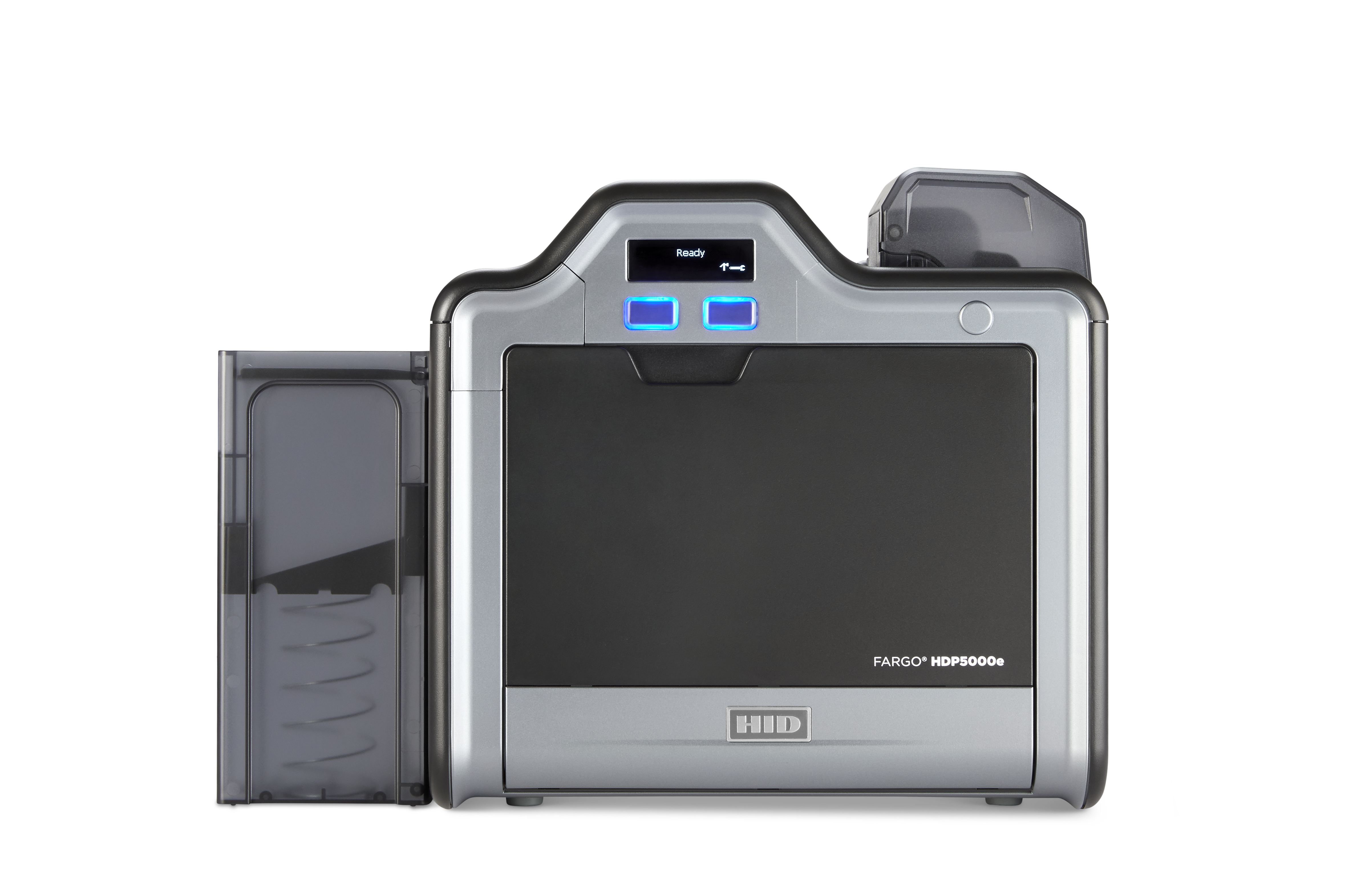 HDP5000e-sarja tarjoaa huippulaadukkaan retransfer-tulostuksen 300 dpi resoluutiolla reunasta reunaan. Malli 096655 sisältää kaksipuolisen tulostuksen sekä HID OMNIKEY -ohjelmoijan, joka mahdollistaa laajan valikoiman älykorttien ja lähilukukorttien ohjelmoinnin tulostuksen yhteydessä.
