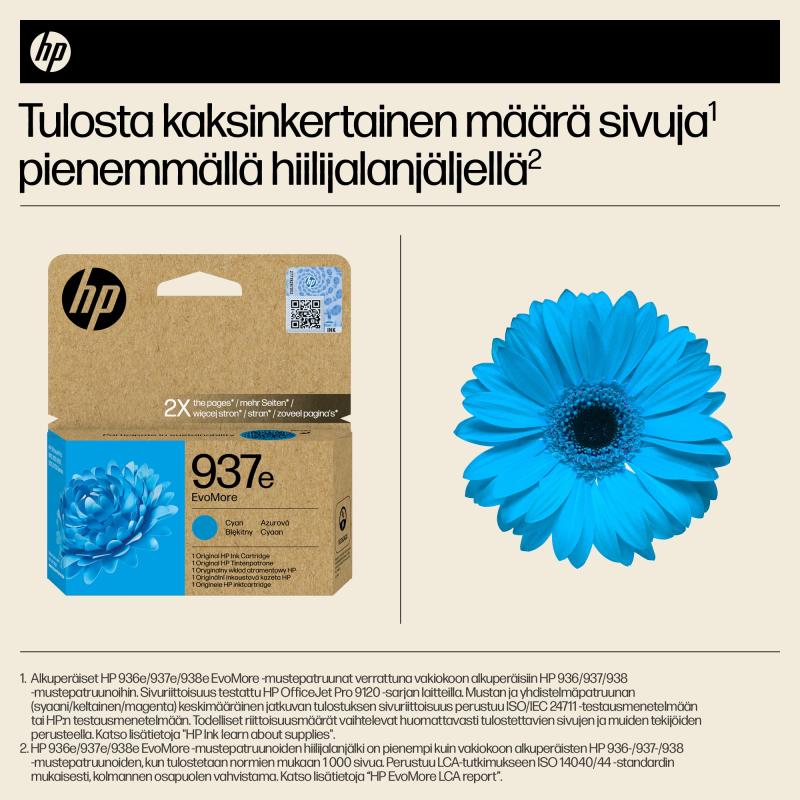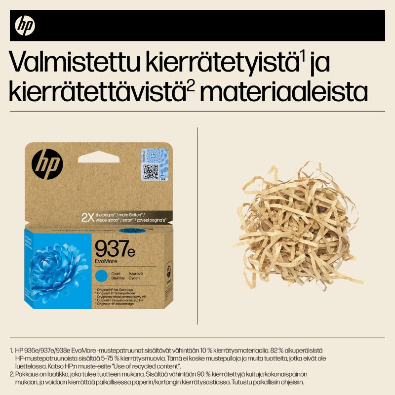 - HP 937e alkuperäinen syaani EvoMore -mustepatruuna: 4S6W6NE