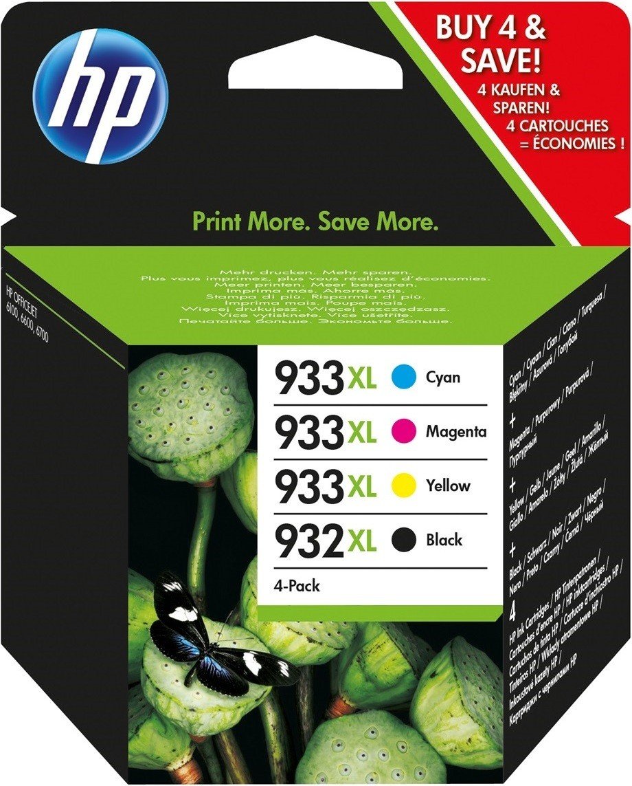 HP 932XL/933XL -mustekasettisarja tarjoaa korkealaatuisen tulostuskokemuksen. Sisältää alkuperäiset mustekasetit 4x värissä: Musta, Syaani, Magenta ja Keltainen.