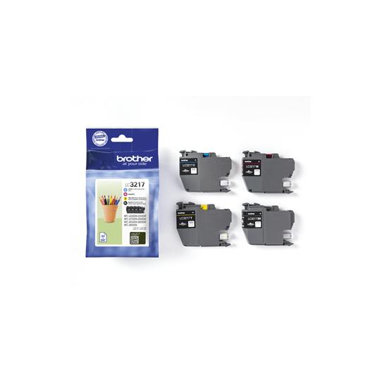 - Mitä pakkaus sisältää? Paketti sisältää Brother LC-3217VAL alkuperäisen mustekasettisarjan, pakkauksen tiedot ja käyttöohjeet.