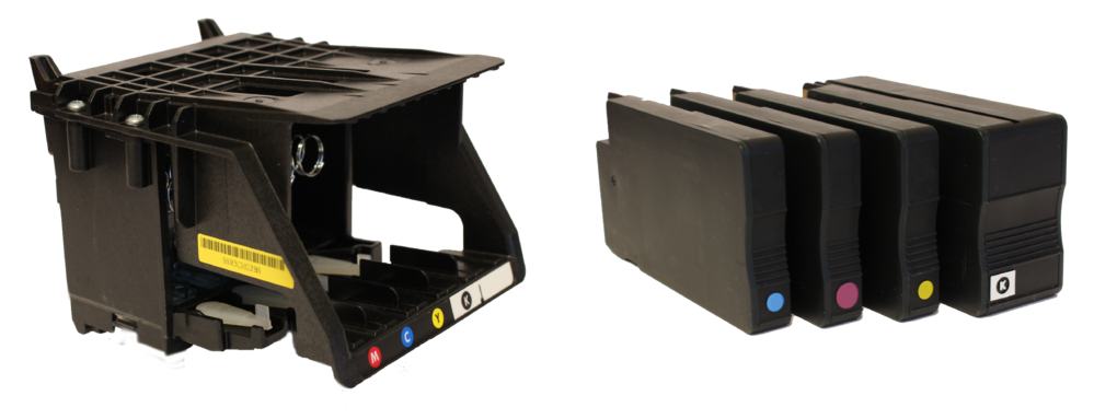 Vaihdettava tulostuspää LX1000- ja LX2000-väritarratulostimelle. Sisältää joukon (4kpl) CMYK-värikasetteja. Tulostuspää esikäsitellään, kun se asennetaan ensimmäisen kerran. (Tämä prosessi vaatii asennuskasetteja).