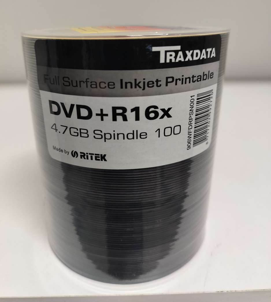 Ritek 906WFDRPSN001 DVD+R 16x 4,7gb Full Surface Inkjet Printable 100kpl Cakebox