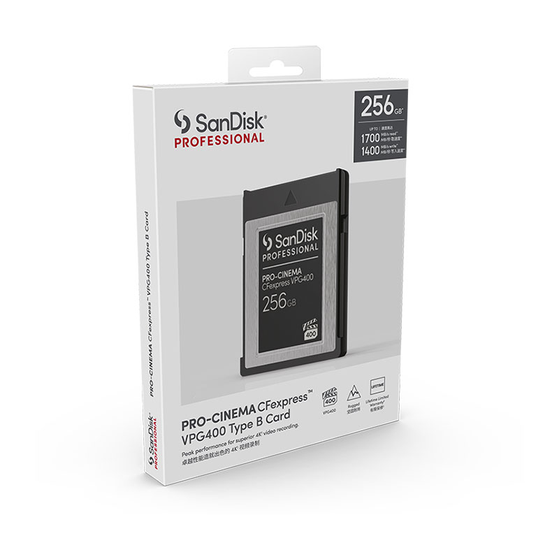 SANDISK SDPCVN4-256G-GNANN, Professional PRO-CINEMA 256GB CFexpress VPG400 Type B Card: Huipputehokas tallennusratkaisu ammattilaisille