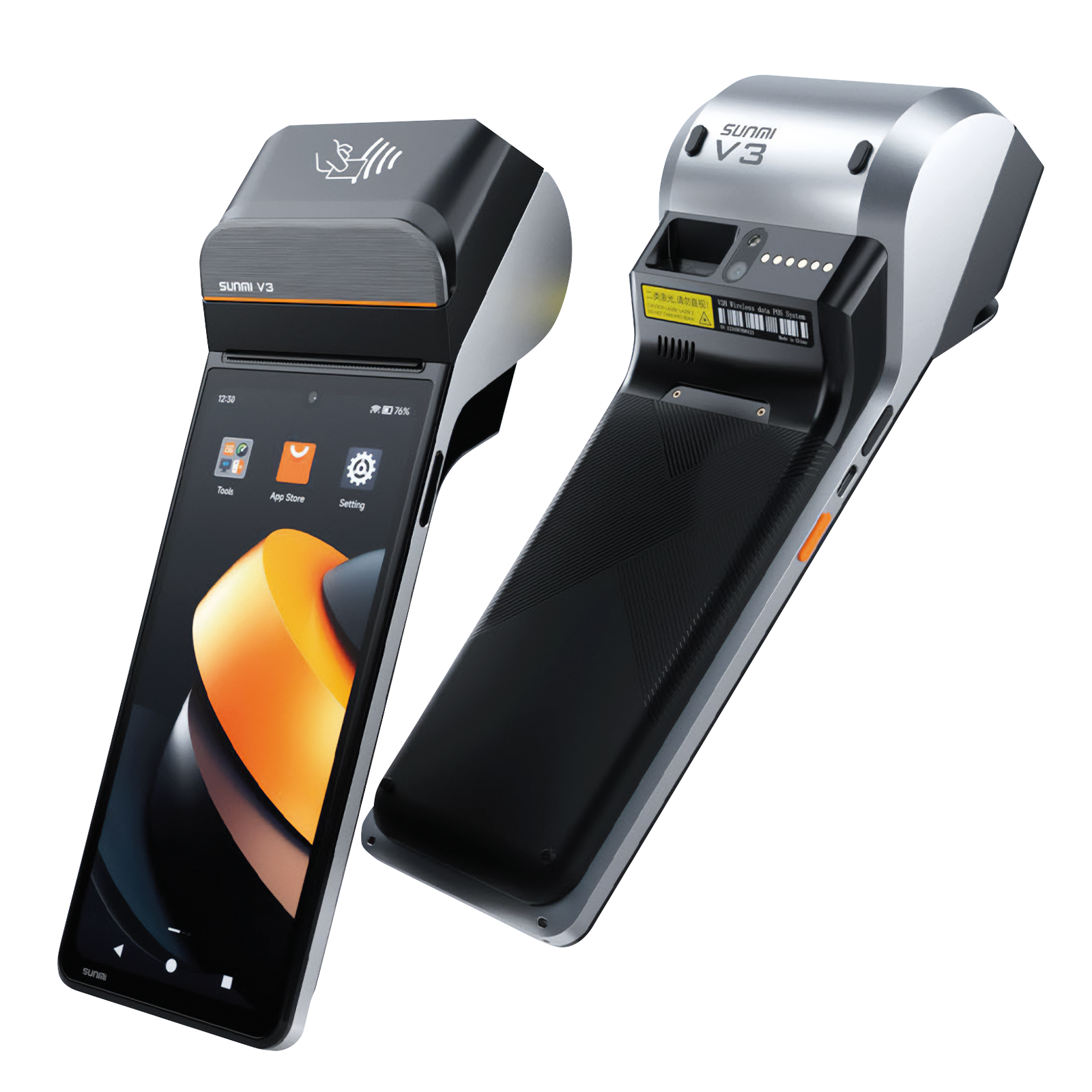 The Sunmi P06120005 V3 PLUS is an Android 14 GMS-certified mobile POS terminal