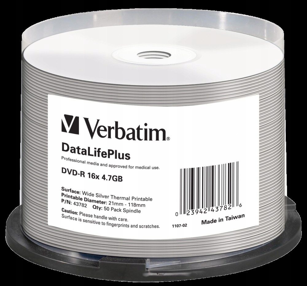 Verbatim 43782 DVD-R 4,7GB 16X Bulk, Wide Silver Thermal Printable, Professional No ID Brand, 50pc