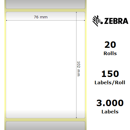 Zebra 3007589-T – Z-Perform 1000D, 76 mm x 102 mm, Direct Thermal, Uncoated Paper, Core 19 mm Label